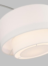 The Sawyer floor lamp in polished nickel by kate spade New York is inspired by whimsical geometry and playful lines. Sawyer has a striking silhouette with graphically taped shades. This is a classic modern arch floor lamp form dressed up with graphically taped double tiered wide shades. Use this fixture in any classic arch floor lamp scenario—a statement over a sofa or dining nook.