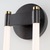 The Cascata Collection, designed by Kevin Kraemer, features a sleek and minimalist design, combining precision craftsmanship with modern aesthetics. The frame is black with brass accents. The bright LED illuminated drapes throughout giving this collection an illusion of weightlessness. This eye-catching collection is a perfect complement to any surrounding. Model shown is a wall sconce.