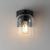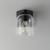 Cut-out metalwork curves around modern bell-shaped glass shades. The series includes pendants and bath vanities available in either Clear or a swirling Marble glass. Available in various complementary finishes: Polished Chrome, Matte Black, or Natural Aged