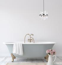 Modern crystal chandelier features top and bottom tier crystal prisms staggered along the wrought iron frame. The thick metal frame wraps around top grade crystal prisms ensure it is built to last, definitely worth it. Hang this work of art and dim the lights for a bit of sophisticated lighting in your home. Get lost in a beautiful light and sleek design available in multiple finishes. The hanging rod conveniently comes with a slope ceiling adapter, perfect for your vaulted or angled ceiling.