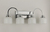 Square tube arms curve to form arcs of Polished Chrome in an interesting and unique fashion. White opal glass shades complete this clean design and provide a soft even illumination. Can be installed up or down.