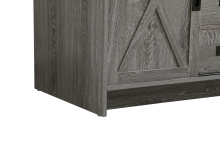 - Features a unique sliding barn door with matte black metal hardware for a farmhouse-inspired aesthetic