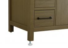 This bathroom vanity embodies a clean, minimalist design, perfectly suited for modern and transitional spaces. Its straight, sleek lines and flat-paneled doors create a refined yet approachable look. The warm, honey-toned finish highlights the subtle wood grain, adding visual interest while maintaining a sense of balance and simplicity. Its structured design, featuring symmetrical drawers on either side and a centered door, adds balance and organization to the overall aesthetic. Matte black hardware, including slim and cylindrical pulls, contrasts elegantly against the warm wood, reinforcing its contemporary vibe while providing subtle visual interest. The thick engineered marble countertop in crisp white adds a sharp contrast to the warm base, creating a visually dynamic combination that is both functional and stylish. This vanity is perfect for those seeking a design that combines modern simplicity with a touch of bold refinement. This vanity is delivered fully assembled and equipped with foot levelers for effortless installation and stability. Combining practicality and bold design, this vanity is UPC certified and ready to transform your bathroom space.