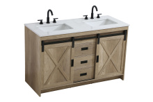 Transform your bathroom with this rustic barnyard-style vanity, designed to balance aesthetic appeal and functionality. Featuring a sliding barn door with black metal hardware and complementary handle pulls, this piece blends rugged charm with practical design. The engineered marble countertop displays unique marbling, while the porcelain undermount sink offers easy maintenance and durability. Available in Espresso, Natural Oak, and Rustic Grey finishes, this vanity suits a range of styles. It includes a deep storage drawer for larger items, a hidden shelf for towels or décor, and adjustable foot levelers for added stability on uneven floors. With pre-drilled faucet holes for easy setup, this vanity delivers style and substance to enhance your bathroom.