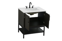 Upgrade your bathroom with this modern bathroom vanity that combines form and function effortlessly. Its sleek wood veneer cabinetry, paired with a bold black metal frame, brings a clean, contemporary vibe to any space. Designed with practicality in mind, the cabinet organizes your essentials, as well as an open lower shelf for added storage or display. The durable engineered marble countertop is built to withstand daily use, while the undermount porcelain sink ensures easy maintenance. Complete with matte black hardware and pre-drilled features for effortless installation, this vanity is the perfect centerpiece to refresh your bathroom with style and efficiency.