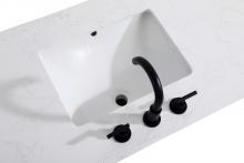 - The vanity is topped with a white engineered marble countertop featuring subtle, natural-looking veining that creates a luxurious yet low-maintenance surface. This countertop adds elegance while providing durability, making it ideal for everyday use.