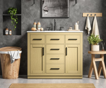 - Toe kick design offers a streamlined look while providing easy cleaning access beneath the vanity.
