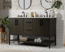 Upgrade your bathroom with this modern bathroom vanity that combines form and function effortlessly. Its sleek wood veneer cabinetry, paired with a bold black metal frame, brings a clean, contemporary vibe to any space. Designed with practicality in mind, this vanity offers soft-close drawers and cabinets to organize your essentials, as well as an open lower shelf for added storage or display. The durable white quartz countertop is built to withstand daily use, while the undermount ceramic sink ensures easy maintenance. Complete with matte black hardware and pre-drilled features for effortless installation, this vanity is the perfect centerpiece to refresh your bathroom with style and efficiency.