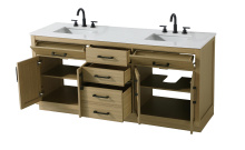 Introduce a perfect balance of functionality and style to your bathroom with this thoughtfully designed vanity. Constructed with a combination of solid wood and MDF, it offers durability and a sturdy build. The sleek engineered marble countertop with subtle grey marbling complements the rustic wood grain finish, creating a stylish and inviting centerpiece for your bathroom. Designed in a contemporary style with a transitional flair, it features a U-shaped shelf for seamless plumbing integration and multiple soft-close drawers for clutter-free organization. A pull-down drawer enhances convenience, while the toe kick adds a refined, clean-lined appearance and simplifies cleaning underneath. Matte black hardware contrasts beautifully with the cabinet finish, tying the look together. Delivered fully assembled and equipped with foot levelers, this vanity combines practicality and aesthetic appeal to suit modern and transitional bathrooms alike.