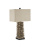 Stacked oyster shells applied by hand to the pedestal of the Villamare Table Lamp create a textural column rising from a satin black wood base. This is one of our painstakingly hand-applied artisanal pieces. The shell table lamp is topped with an oatmeal linen shade.