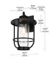 Add character and warmth to your outdoor space with this beautifully crafted iron and glass wall sconce. The sleek black iron frame holds a clear seeded glass shade that provides a rustic yet modern charm, while also ensuring maximum illumination for your entrance, porch, or patio. The fixture has a broad metal hat shade that directs light downwards, creating a comforting atmosphere while adding a touch of industrial flair. Designed to endure all types of weather, this wall sconce is made to last and maintain its beauty for years to come. It blends traditional and contemporary styles, making it versatile for almost any home exterior. The iron framework wraps around the glass for added visual interest, while the seeded glass creates a stunning glow, turning your entryway into a welcoming beacon.