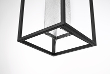 This outdoor wall sconce blends modern simplicity with timeless charm. The sturdy iron frame is designed in a geometric shape, beautifully housing the clear seeded glass that allows the warm glow of the light to shine through. The clear seeded glass adds texture to the illumination, creating an inviting and sophisticated glow that transforms the exterior of your home. With an E26 socket base that easily accommodates standard bulbs, this fixture not only provides style but also high functionality. Whether flanking your front door or lighting up your patio, this sconce elevates your outdoor space with a crisp, contemporary look that is both durable and refined.