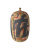 The Zeal Multi-Colored Vase is crafted from porcelain with a richly textured tan surface ornamented with patterns in black, green, and red that create a striking contrast. The layered colors and hand-finished detailing bring the refined jar shape a sense of movement and energy that culminates at the top in a tiny neck. The boldness of the brushstrokes suggests an abstract expressionist influence.