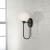 Playful forms meet sophisticated style in the Ansley 1-Light Sconce for HomePlace. The curved stem draws the eye toward the Soft White glass globe shade, while the Matte Black finish creates contrast.