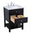 Create a refined and relaxing bath space with this contemporary design vanity, presenting its simplicity and clean straight lines in a minimalist appeal. The 24" black vanity, crafted of solid poplar wood, provides ample storage within its soft-close drawer and open shelf base, accentuated with chrome hardware. Rounding out the design is a luxurious Itallian Carrara white marble with a white porcelain under-mount oval sink.