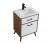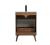 Delve into a world of minimalistic fashion and contemporary styling with this midcentury modern 24" vanity. The clean lines anchors the design, while the oblique tapered cylinder legs add subtle interest. A black handle adorns the top fake drawer hiding the base of the porcelain sink while another one allows you to pull the bottom drawer out, letting you store your bathroom necessities and toiletries. The compact size makes it the perfect vanity for any bathroom or powder room, regardless of size.