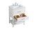 Make the most of your space with this 24" traditional style bathroom vanity. Its traditional style is able to complement many aesthetics with its white finish, Calacatta engineered marble countertop, and the contemporary slender brushed nickel handle bar that sits on the upper false drawer and the lower u-shaped drawer, allowing you to store an assortment of bathroom essentials. The lower shelf makes it the perfect space to hold new towels for your guests. This compact vanity ensures both form and function in your bathroom or powder room for you and your guests.