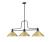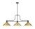 Signature details highlight the expert design and craftsmanship of a three-light linear billiards pendant from the M?lange collection. Satin gold finish steel shades add industrial flair with a conical profile, casting a warm and welcoming glow over a kitchen island or game table, and offering a classic monochromatic presentation.