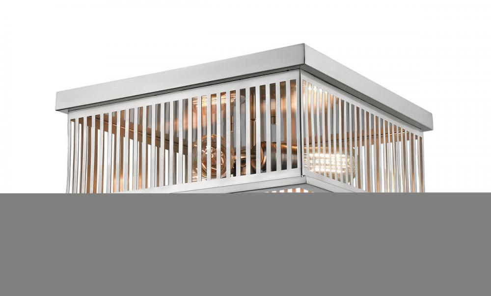 Reflecting a modern version of urban industrial flavor, this three-light flush mount ceiling light delivers a sleek look in any living space. Enjoy the beautiful brushed nickel finish over a steel frame that offers a peek-a-boo view of vintage bulbs.