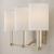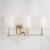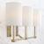 Blending transitional design with classic appeal, the Ingrid Vanity brings sophistication to any powder room. The Matte Brass finish complements the crisp acrylic details, topped with cylindrical White fabric shades for a neat, tailored look.