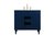 Modern sophistication is defined with the blue finish and gold barpulls of this vanity and slender tapered legs. Its length makes it the perfect addition to any sized home, and saves space with its storage area hidden behind the Single cabinet door and two bottom drawers. Topped with a highly durable engineered stone countertop and a porcelain undermount sink, this modern design will become your focal point of your bathroom or powder room. Equipped with soft-closing drawer and doors adds a quiet functional touch.