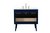 Delve into a world of minimalistic fashion and contemporary styling with this midcentury modern 36" vanity. The clean lines anchors the design, while the oblique tapered cylinder legs add subtle interest. However, the artful juxtaposition between the blue and white top creates a blend of bright modernity and classical traditions. A gold handle adorns the top fake drawer hiding the base of the undermount porcelain sink while another one allows you to pull the bottom drawer out, letting you store your bathroom necessities and toiletries. The compact size makes it the perfect vanity for any bathroom or powder room, regardless of size.