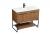 Live in comfort with this modern vanity. Dressed in a walnut brown and modern black metal hardware, its sleek style will have your bathroom or powder room elevated in industrial sophistication. The open shelf at the base and two doors reveal ample storage space for your bathroom essentials. Clean lines create its own visual interest, adding trendy looks to your already chic room.