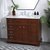 From its Italian Carrara white marble top to its contemporary-styled hand painted teak wood cabinet, it is sure to enhance either your home or office bathroom. Beneath its lustrous, natural marble top and an oval, white porcelain under mount sink, is a cabinet with 3 handsome drawers on each side and 2 center doors with a Single shelf for all your bathroom essentials, highlighted with recessed panel doors, brushed steel bar handle and knobs, stands on strong solid pedestal feet. A wonderful balance of simplicity and practical function! Measurements: W42”xD21.5”xH35”