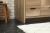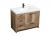Modern sophistication is defined within the wood finish look and black barpulls of this vanity. Its length makes it the perfect addition to any sized home, and saves space with its storage area hidden behind the double cabinet doors and one bottom drawers. Topped with a highly durable thick resin white counter top and an integrated sink, this modern design will add everlasting class to your bathroom and powder room.