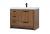 Modern sophistication is defined within the wood finish look and black barpulls of this vanity. Its length makes it the perfect addition to any sized home, and saves space with its storage area hidden behind the double cabinet doors and one bottom drawers. Topped with a highly durable thick resin white counter top and an integrated sink, this modern design will add everlasting class to your bathroom and powder room.
