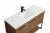 Live in comfort with this modern vanity. Dressed in a walnut brown and modern black metal hardware, its sleek style will have your bathroom or powder room elevated in industrial sophistication. The open shelf at the base and two doors reveal ample storage space for your bathroom essentials. Clean lines create its own visual interest, adding trendy looks to your already chic room.