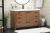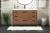 Modern sophistication is defined within the wood finish look and black barpulls of this vanity. Its length makes it the perfect addition to any sized home, and saves space with its storage area hidden behind the double cabinet doors and one bottom drawers. Topped with a highly durable thick resin white counter top and an integrated sink, this modern design will add everlasting class to your bathroom and powder room.