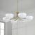 The Reece 6-Light Chandelier brings a classic look with a touch of retro style. The Aged Brass details complement the smooth Matte White finish, while the rounded metal shades turn up or down to cast the perfect ambient glow.
