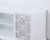 Sleek and vibrant, this transitional media cabinet will make a striking statement in any room can showcase up to a 60" flat screen TV at a perfect height. Featuring top-quality mirror panel with circle overlay and hand-painted in a semi-gloss white finish, accentuated with crystal square knobs. Functional and chic, it features 2 side doors, center opening with shelvings that provide plenty of storage for your equipment, games, and books.
