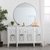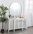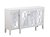 This white finish cabinet is demure luxury mixed with subtle charm. Delicate crystal knobs adorn the 4 cabinet doors, while the clear mirror panels, and the overlapping semi-circle design, adds a touch of glam and modern luxe. Whether a table lamp rests on the top, or you hide away trinkets within the storage space, this is the perfect accent to any room.