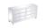 Sophisticated with a reflective touch, this 60 inch wide contemporary dresser adds style and functionality to any room. Six deep drawers provide ample storage space, each decorated with a square brushed steel knob. Distinctively designed with mitered corners, all surfaces are inlaid with mirror panels.