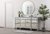 Reflect your glamourous style in your home with this stunningSilver finish cabinet. Gleaming glass panels add ritzy charm while also opening up the space, and brushed steel finish knobs reveal storage spaces within the 4 doors and 3 drawers--plenty for any sized home! Whether this shimmering cabinet is placed in your foyer, living room, or dining room, its beauty won't be amiss.