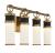 The Savoy House Abel 4-light bath vanity light flaunts a sleek and airy look that creates a robust presence in any space. Tubes of white opal glass are accentuated by ring accents and thoughtful hardware detailing in a rich combination of matte black with warm brass. Integrated LED light sources contribute to the sleek style. Abel is 10" in height, 30" in width and extends 5" from the wall. Damp area rated.
