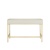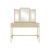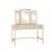 The Arden Ivory Vanity is inspired by a 1970s reverse-painted glass antique found at the Paris flea market. The vanity features ivory reverse-painted glass panels on the top, front, and sides with solid brass trim, hardware, and legs. The ivory and gold vanity has a beveled top and drawers with soft-close glides. A beautiful matching vanity mirror is sold separately.