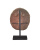 Expressive as the face of any perplexed human, the Artisan Small Face Disc is the work of an empathic artist. Painted on ceramic with a strong surface patina, the red and blue sculpture will bring a whimsical touch to a space. Because this round sculpture is made by hand, there will be variations in it from piece to piece. The face is hung on a black metal stand.