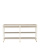Made of mahogany and oak in a mix of off-white and fog finishes, the Aster Console Table was inspired by an antique from the Winterthur Museum. The gray and white console table has two shelves and is fitted with polished brass ferrules. This piece is in the Winterthur Collection.