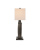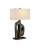 The Avant-Garde Table Lamp has a mid-century-modern inspired body, the flowing form leaning a bit toward brutalist in design. The lamp is made of aluminum in a graphite finish that brings the profile heft. The base and finial match the sculptural piece, and the bone linen shade is a pale contrasting element.