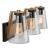 The Treviso collection by designer Kevin Kraemer is a perfect addition to any vanity area. This series features clear cone shaped glassware and is complimented with a black frame and brass accents. It almost appears at the holder has the bulb floating within. Three light version shown but available as a single sconce or 4 light as well.