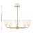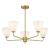 This Savoy House Blair 5-light chandelier is oh so versatile! It can be installed with the lights facing up or down, making it perfect for meeting every lighting need. Slender, sleek arms are finished in Warm Brass and topped with shades of spectacularly swirling strie glass. Blair is 30" in width and has an adjustable height ranging from 9.25" to 63.25". Uses five standard size bulbs of up to 60 watts per bulb. Bulbs not included. Comes with four 12" downrods and one 6" downrod.