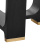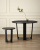 The Blake Black Dining Table is made of Mindi wood in a matte caviar black finish. The legs that curve up from the bottom hold a round top that has a subtle starburst pattern on the Mindi wood veneer. The feet are capped with polished brass ferrules. Because of its sleek lines, the table is stylistically contemporary.