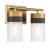 From top to bottom, the Savoy House Brickell 2-light bath vanity light is designed to make any bathroom a standout space. Its classic pairing of warm brass and black is made even better with the addition of textural clear crackled glass shades. Brickell is 8.75" in height, 14" in width and extends 5" from the wall. It uses 2 standard size bulbs of up to 60 watts per bulb (bulbs not included).