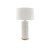 Intricate hand-formed ceramic flower petals cover the surface of the Calla Lily Table Lamp. The textural interest of the petal-covered column is heightened by the antique brushed-brass accents. The white lamp is topped with an eggshell shantung shade that completes this pretty composition.