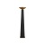 The Calyx Torciere Floor Lamp is made of rubberwood with pitting on its surface that brings patina to the telescoping body. Also contributing to the textural feel is that the black finish has been rubbed away on the edges on the cross-shaped form. The black floor lamp sits on a minimal metal base in an antique brass finish that matches the bowl holding the integrated LED light source.