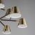 Metal shades finished in a warm Heritage Brass are accented with Dark Bronze metal straps and Tobacco Brown leather wrapped details. Recessed within the metal shades, a frosted glass diffuser softly casts the LED light source within. Paddles on every shade