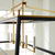 The Carlow six-light billiard island chandelier in midnight black is a traditional tapered square lantern that is wider at the base and smaller at the top. The lantern's body has either a black or white metal frame suspended from, and accentuated by, a brass square tube armature. The brass armature is the focal point of the design and almost looks like a crown on top of the lantern frame.
